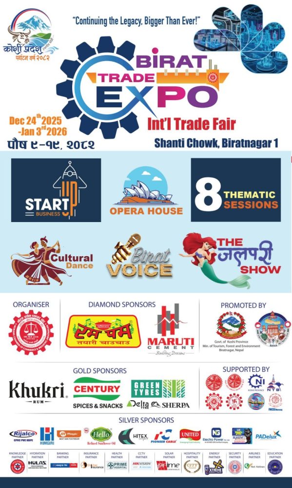 विराटनगर / विराट गाेल्डकप फुटबल प्रतियोगिता २०८१ काे पत्रकार सम्मेलन सम्पन्न गरिएको छ । “साथ फुटवलको विकास” भन्ने मूल नाराका साथ यही २०८१ फाल्गुण १९ गतेदेखि २८ गतेसम्म विराटनगरमा आयोजना गरिने “विराट गोल्डकप फुटबल प्रतियोगिता २०८१” को नवौं संस्करणको पहिलो चरणको पत्रकार सम्मेलन आज सम्पन्न गरिएको छ ।