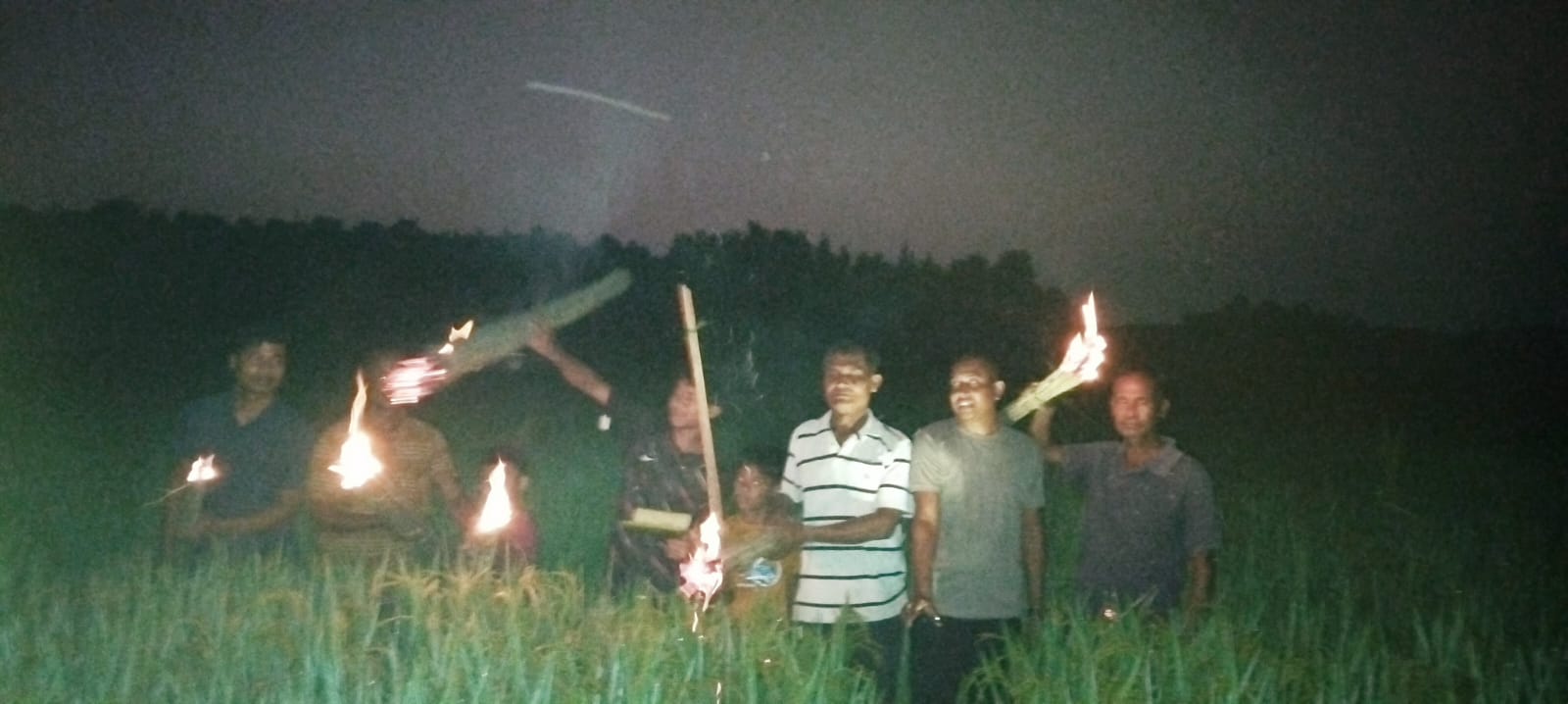 सन्ठीको मुठोलाई देवाडी (एक प्रकारको खर)ले बाँधेको हुन्छ । त्यही सन्ठीको मुठोमा बेलुका आगो लगाई आ आफ्नो बालीनालीको वरिपरि घुम्दै राम्रो फसलको कामना गर्दछन् ।