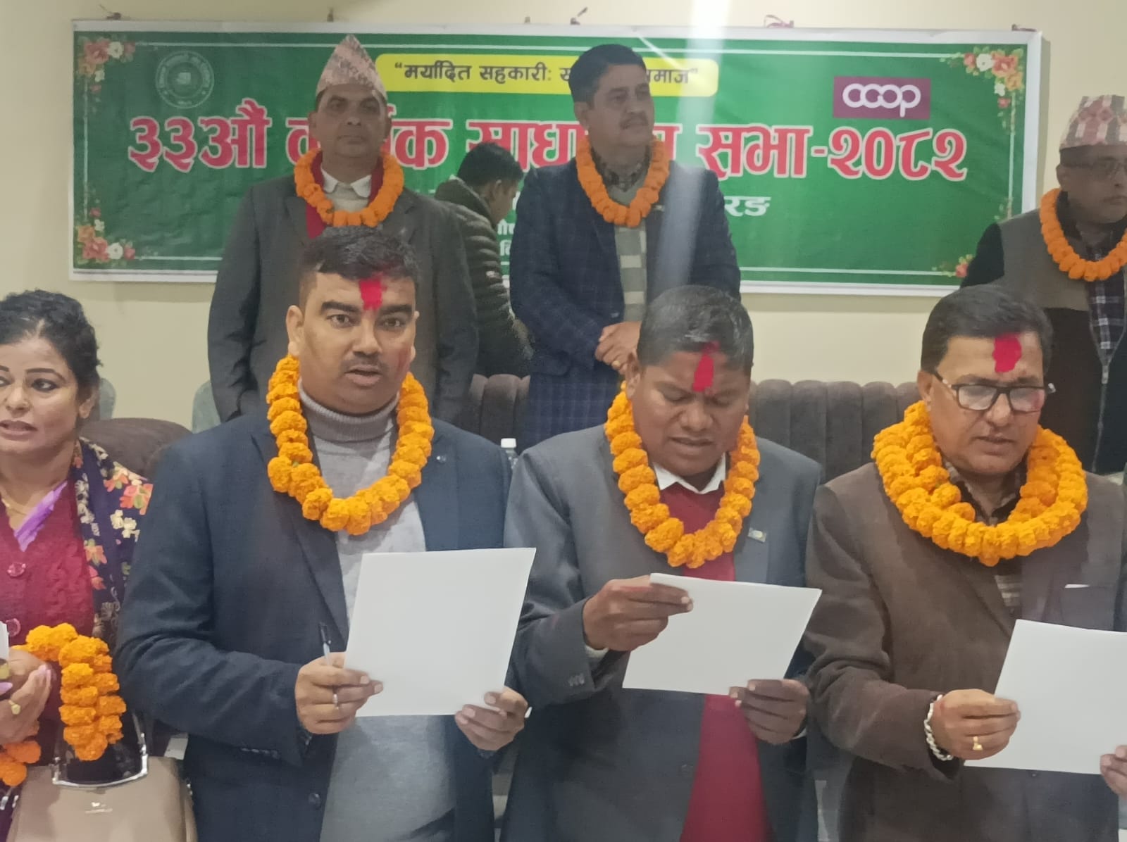 वरिष्ठ उपाध्यक्षमा चन्द्रप्रसाद भट्टराई, उपाध्यक्षमा संगीता दाहाल, सचिवमा अमृतबहादुर गुरुङ, सहसचिवमा हेरम्बराज भट्टराई र कोषाध्यक्षमा ई. कमलेश्वर ठाकुर सर्वसम्मत चयन भएका छन् । १० लाखभन्दा बढी खुद नाफा, १ करोडभन्दा बढी ऋण लगानी