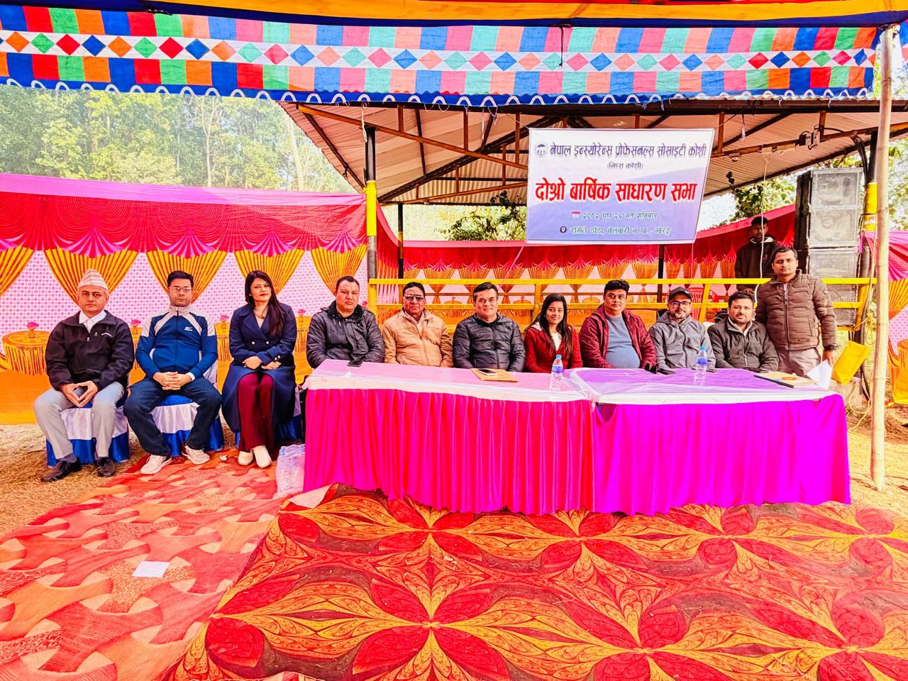 विराटनगर / नेपाल इन्स्योरेन्स प्रोफेसनल्स सोसाइटी, कोशीको दोस्रो वार्षिक साधारण सभा सम्पन्न भएको छ। मोरङ जिल्लाको बेलबारी नगरपालिका–स्थित रमिते डाँडाँमा सम्पन्न उक्त सभामा संस्थाका अध्यक्ष खड्गबहादुर श्रेष्ठले आर्थिक वर्ष २०८१/०८२ को आय–व्यय विवरण प्रस्तुत गर्नुभएको थियो।